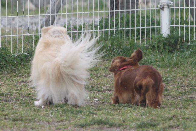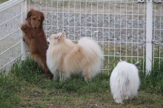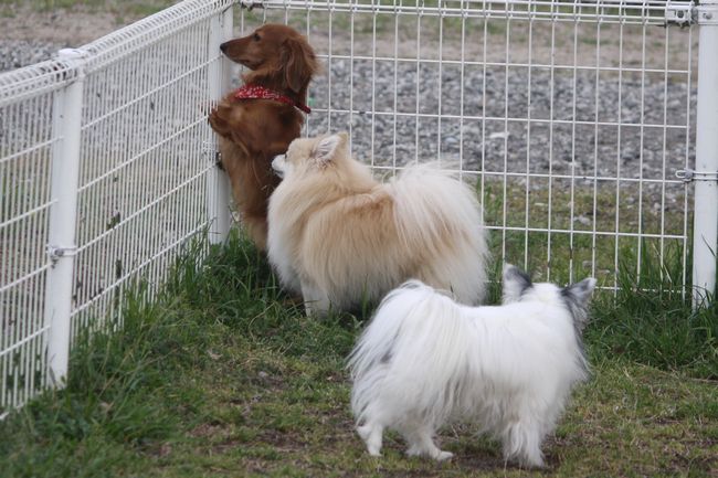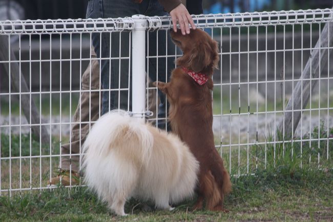 通りかかったダックス飼いの方がやってきて、ダックス君だけ中に入れたんだけど…