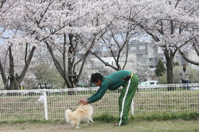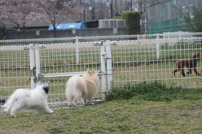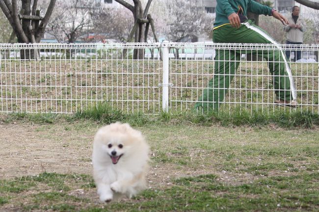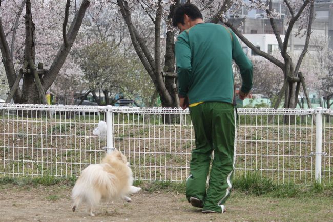 酔っ払い花見をしていた兄ちゃんが、トイレに行った帰りに中を通って行ったんだけど、ジョンは遊んで貰えると思ったのか追いかけていきました(笑)
