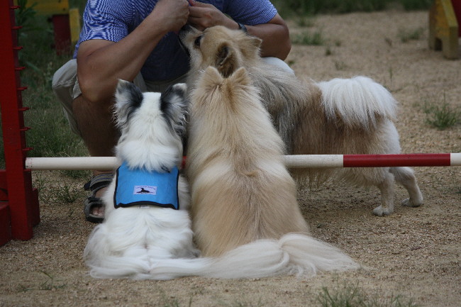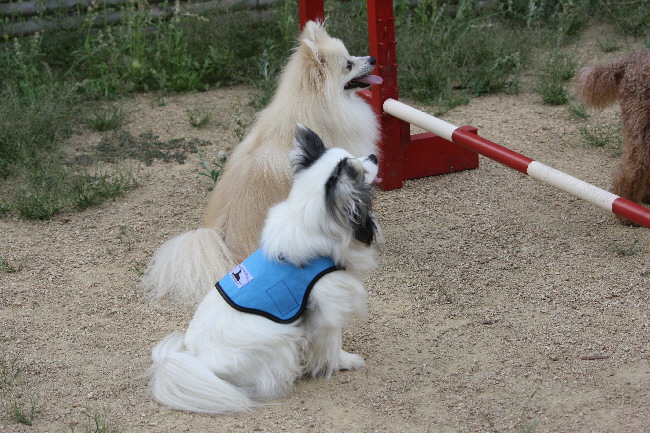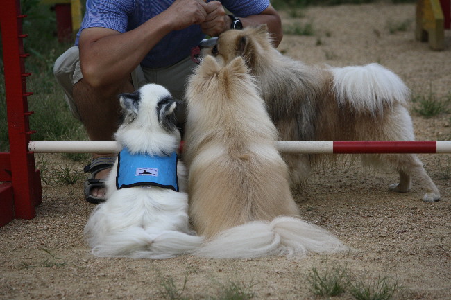 いくらポン太君が先にオヤツを貰おうとも、バーを跳ぶ事無くずっと待ち続ける若達