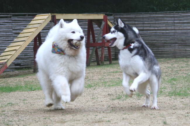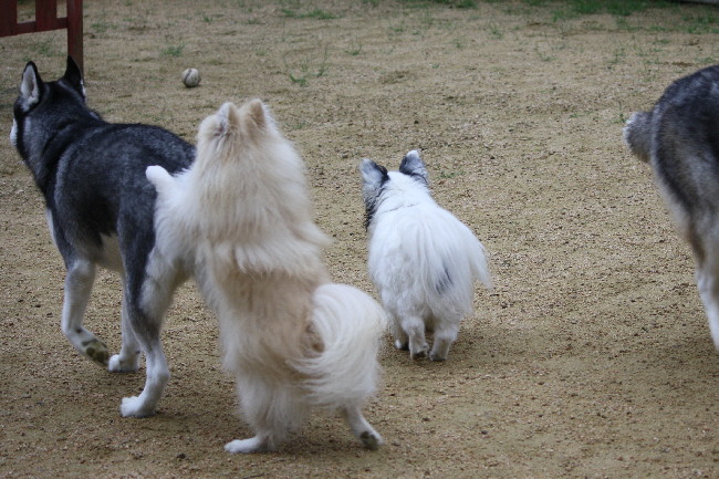 仲良くボール遊びをしていたクッキー君とクオーレ君