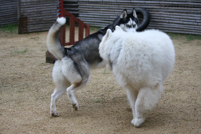 シドちゃんの尻尾は傘の様にしてたのではなくて、パピが尻尾を跳ね上げるように強引に匂いを嗅いでいたのでした(爆)