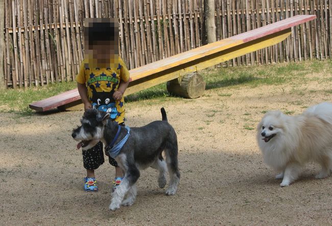 この日チビちゃんは歩くとピコピコ鳴るサンダルを履いて来ていたんですけど、その音を音が鳴るオモチャと思ったランビ君が「おもちゃはどこだ?」とやたらチビちゃんに寄って行ったんです。