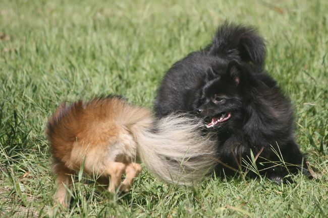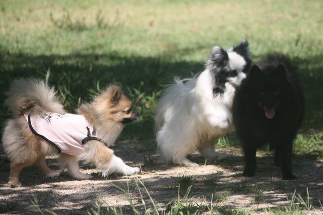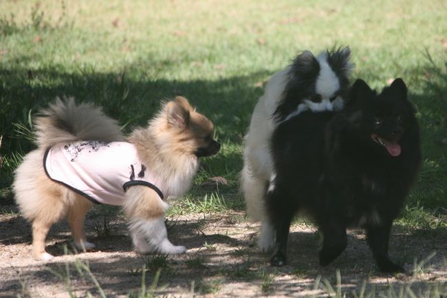 むさし君、黒ポメと会ったのが初めてだった様で、ちょっとおっかなびっくりな感じです。
