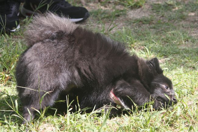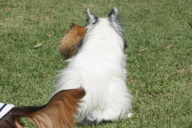 さっきは悪のスーパーマンとして、いたいけなダックス君を追い掛け回していた、スーパー(マン)ポメラニアンのむさし君。