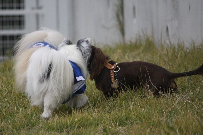 うちと同じ様にお参りに来られていた方が、2ダックスを連れて入ってこられました。