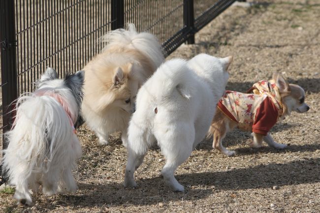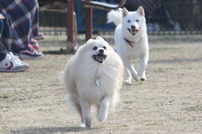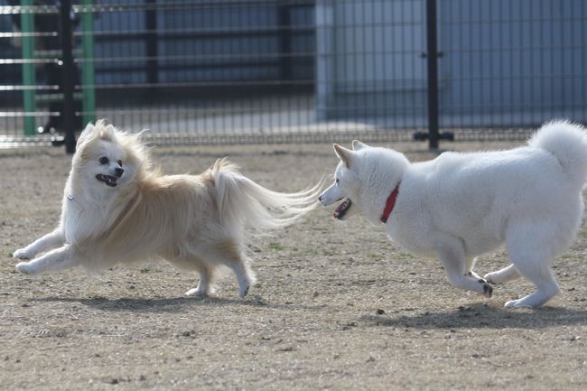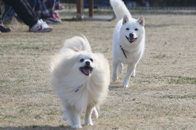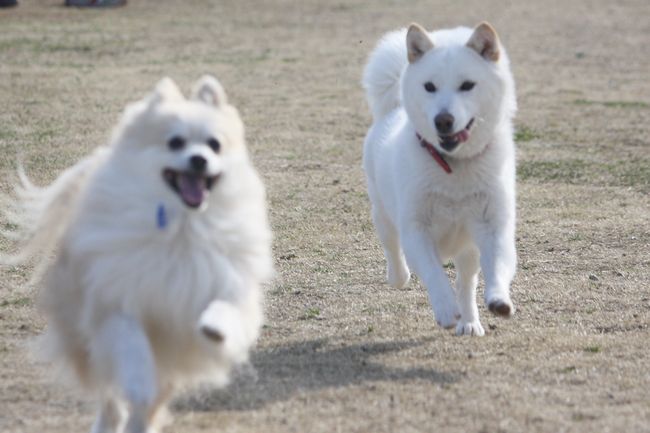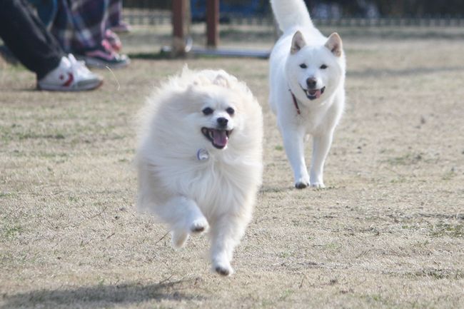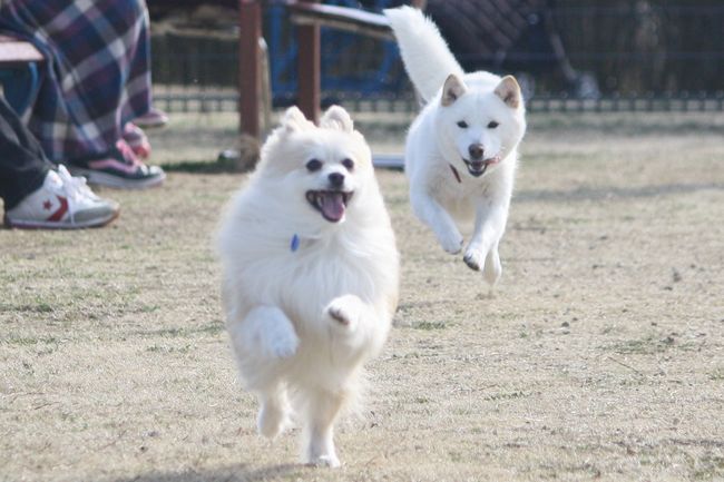 白柴ちゃんはとにかく走るのが楽しいようで、走っている子を見つけては追いかけていました(笑)