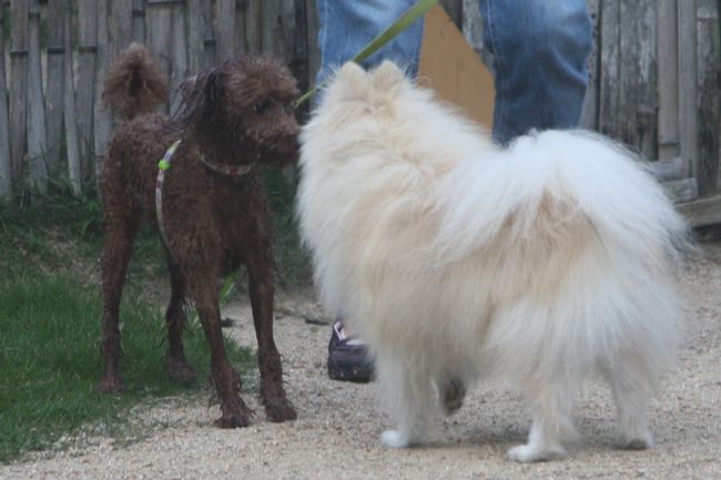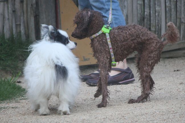 ポコちゃんもかなりのヤキモチ妬きで、飼い主さんがジョンとパピを撫でていると蹴散らそうとします。