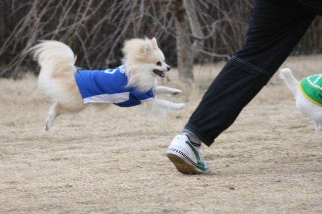 ボール投げをして貰っているジャックラッセルテリア君を追い