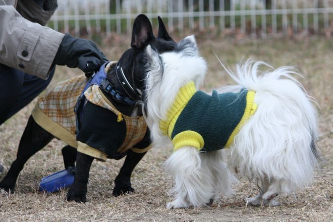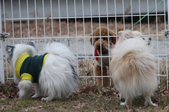 ちなみにパピが急いで走っていった先には、散歩中のトイプー君がいてました。
