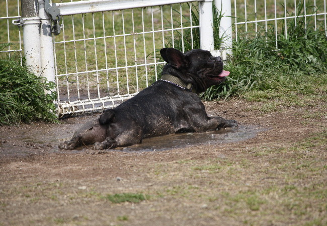 いや、おフランス犬だし、美容の為に泥エステをしていたのかもしれません。