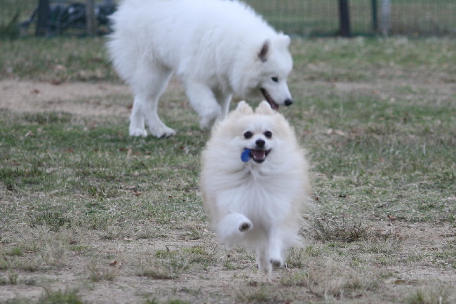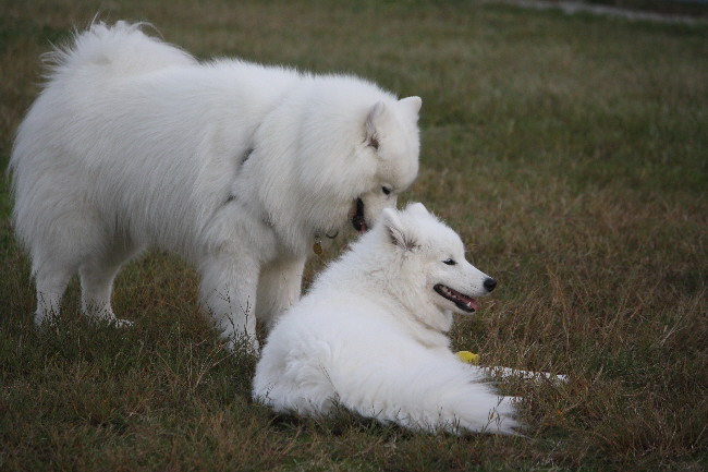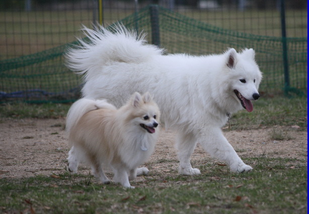 大好きなサモエドさんが2頭もいて、ジョンは鼻血ブーにならないかちょっと心配でした(爆)