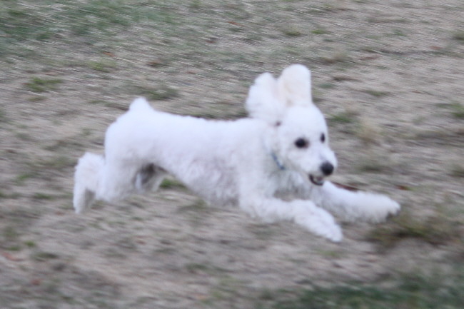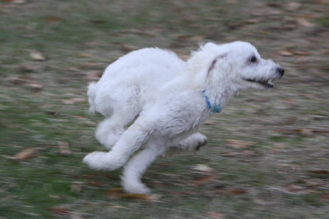 元気に走り回るビションフリーゼ?マルチーズ?の8ヶ月の女の子がいてたので、流し撮りにチャレンジ
