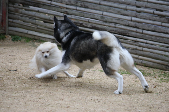 この日はこのランの看板犬、秋田犬の吾郎君もランに入ってきました。