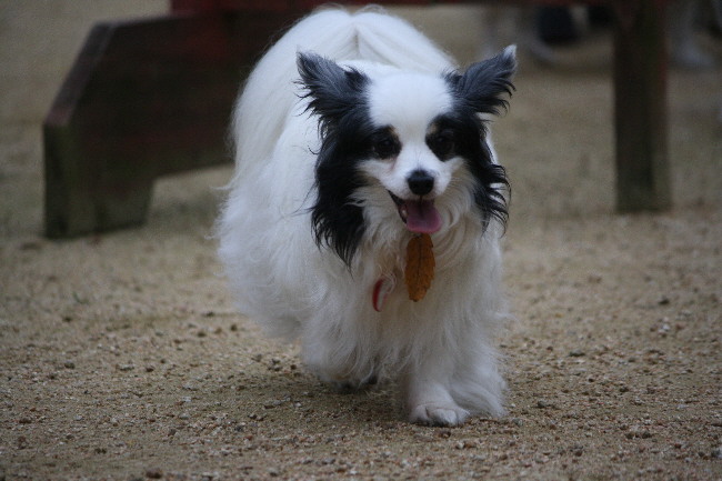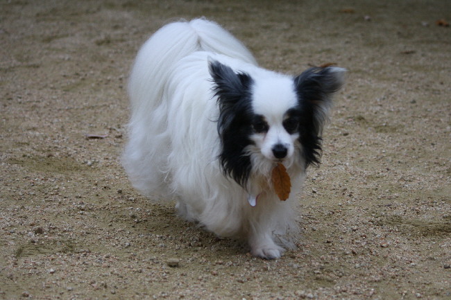 パピは落ち葉のネクタイを着けてやってきた(爆)