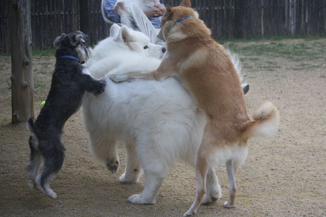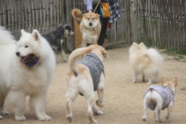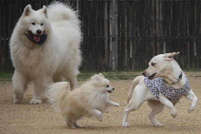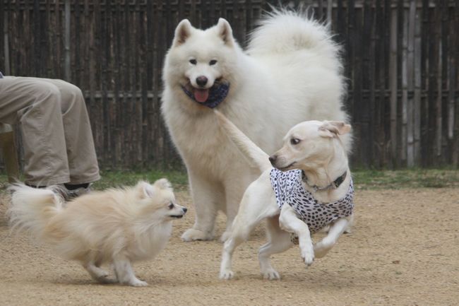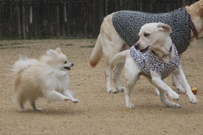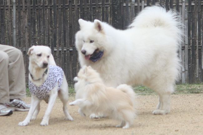 ジョンがラブちゃんを追いかけている時、パピはお友達と散歩中(笑)