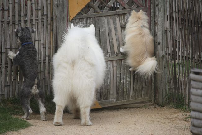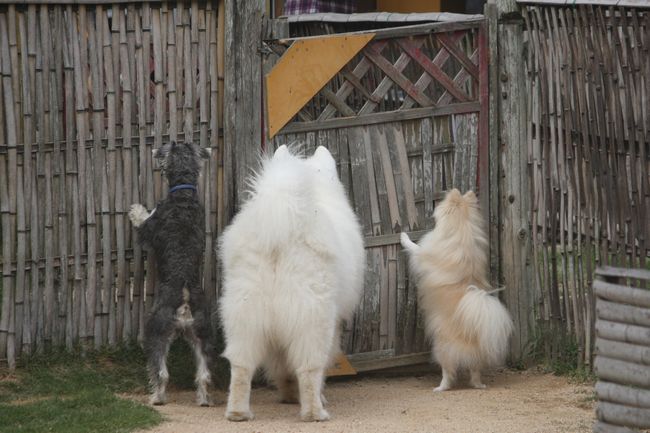 お約束の愛犬広場名物、ドアボーイズのお出迎えです。