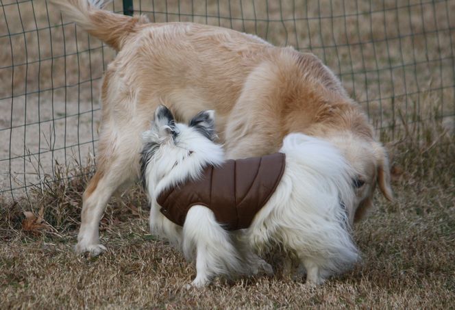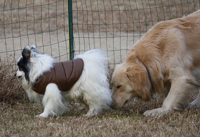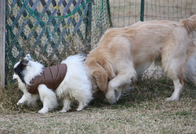 ゴールデン君はパピの匂いを嗅いで大物だと