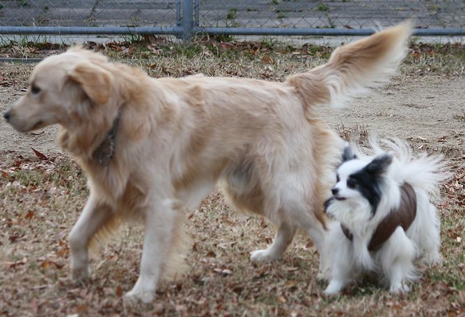この時ばかりは、小さいパピがゴールデン君より大きく見えました!