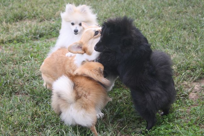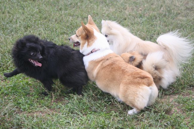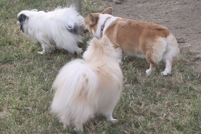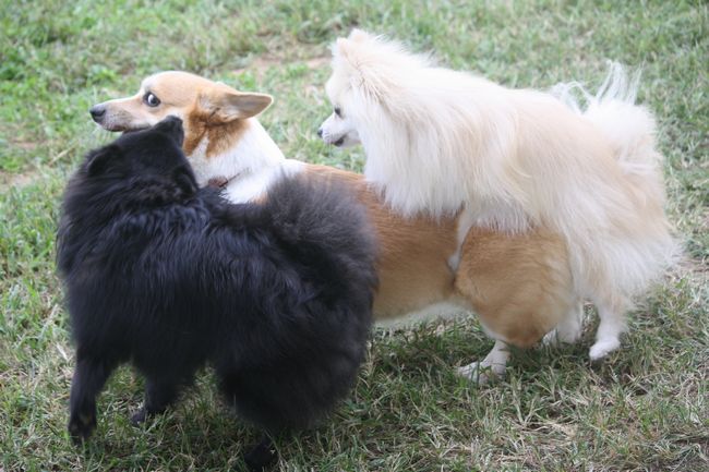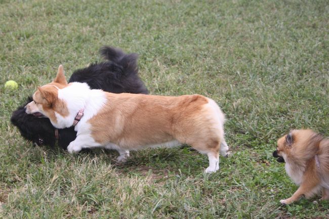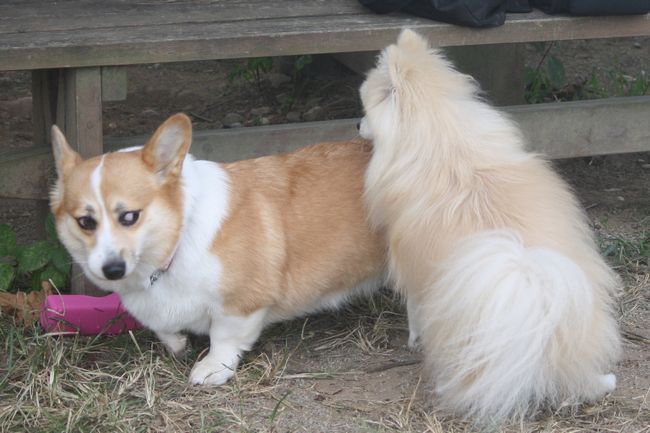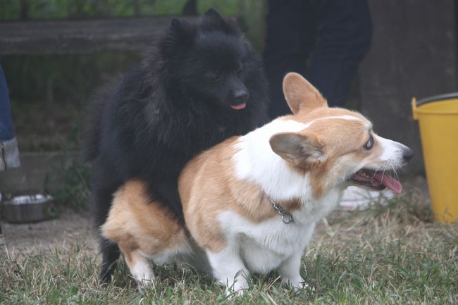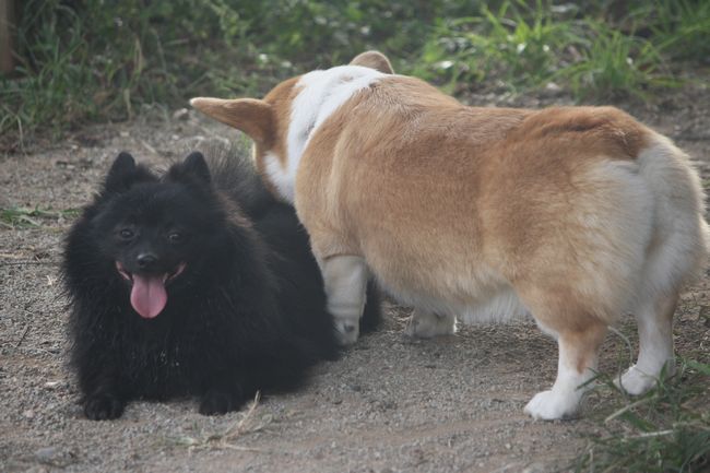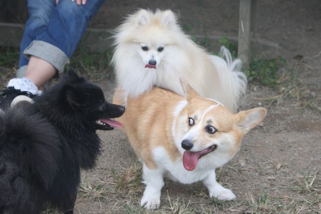 パン君がコーギーのあずきちゃんにマウントしていた(爆)