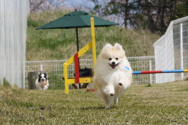 元気に走り回るジョン君とまったりパピ君、いつも対照的な若達ですね。自分も、もっとランに連れて行かなくちゃと思いましたよ!こんな笑顔、いつも見たいですからね。