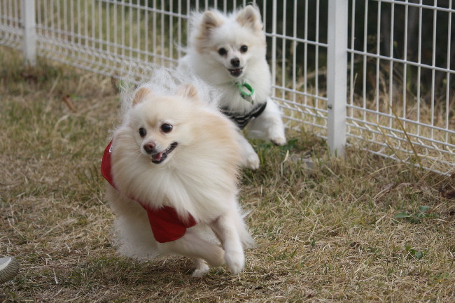 シェパードちゃんとmixちゃんが帰ってから、恒例の?ルイ君とポン太君との追いかけっこが始まりました。