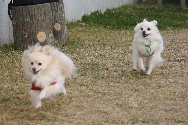 ポン太君が追いかけられている写真ばかりだけど、途中何故か立場が逆転してルイ君が追われる事がありました(笑)