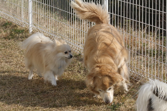 仲良く追いかけっこしているように見えますけど、何度かジョンはシェパードちゃんに怒って向って行っていました(^^;)