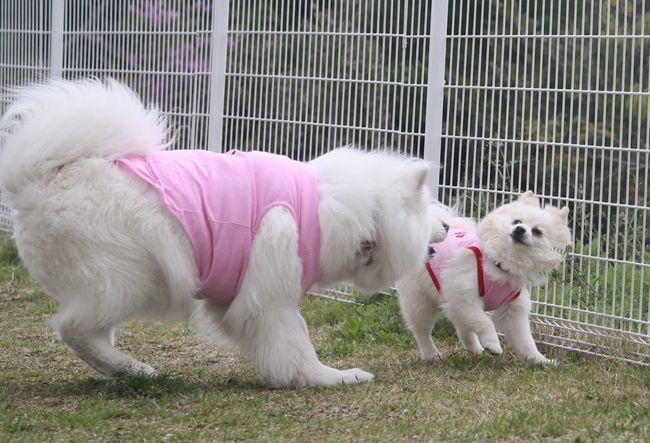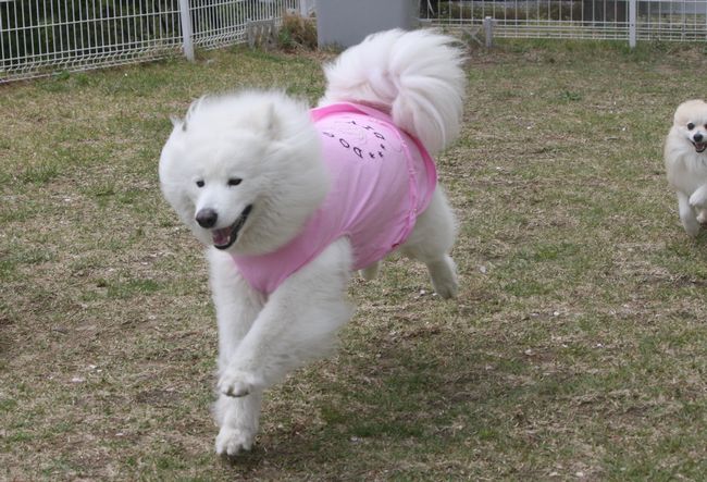 ジョンが自分に向って走っているとさくらちゃんが追いかけてきました。