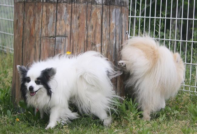 ガーっと遊んで休憩なジョン、あくまでマイペースでウロウロなパピ。