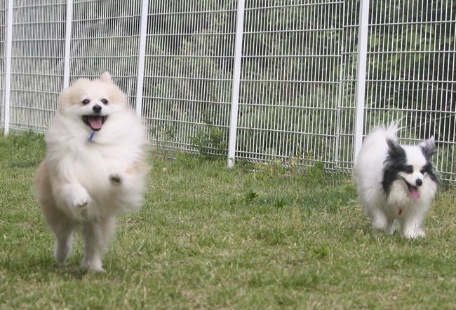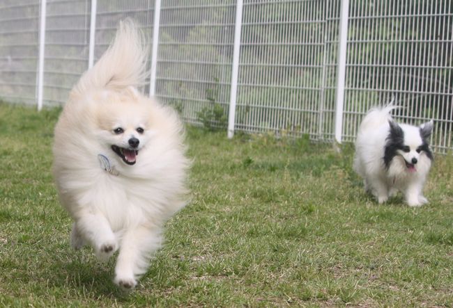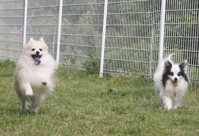 とにかくランへ入ってすぐはジョンもパピもこうして駆け回る事が多いです。