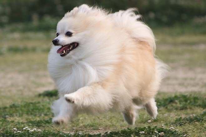 後ろでトイプー君が見事な飛行犬になっていました(笑)