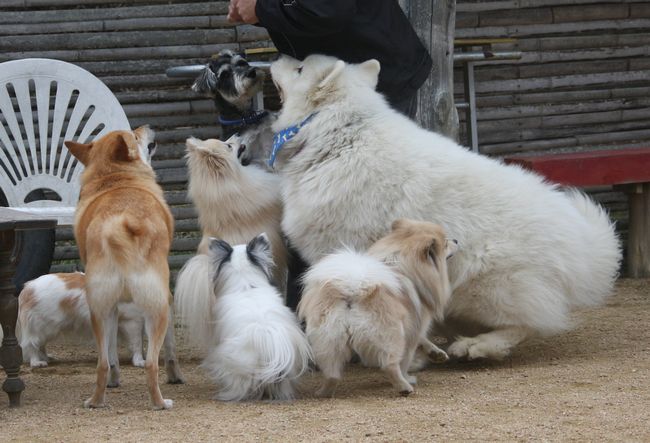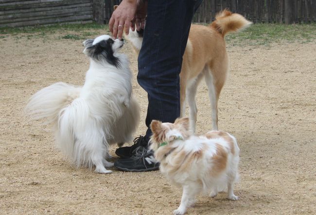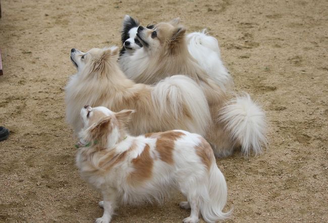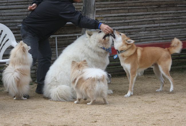 こうして見ていると何故かポン太君もランディー君も、自分のパパがオヤツをあげているのに遠巻きなんですね。