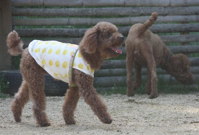 トイプーのクッキーちゃんと奥に写っているのが、ナナちゃんと住んでいるハチ君