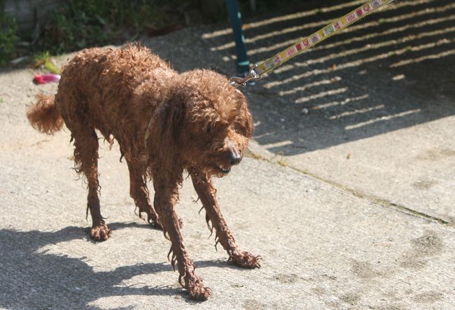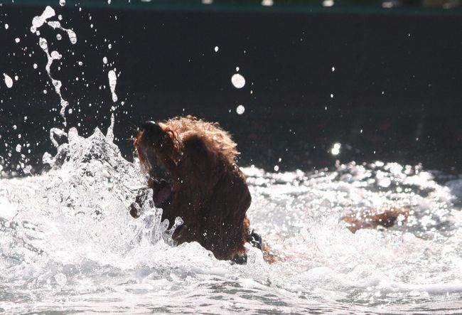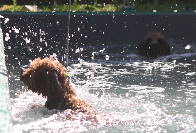 ここの常連犬の多くの子は、こうして暑い時期になるとブールに入る子が多くなります。