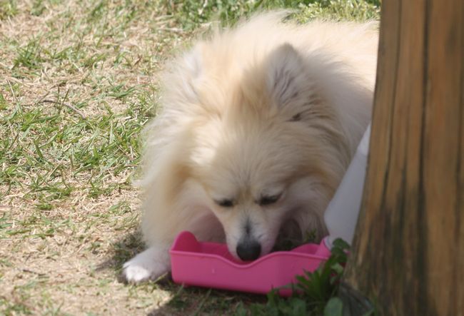 水を飲む時もフセのボーズで飲んでるし(^^;)