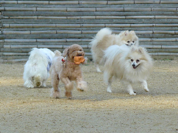 小ドッグランではまるたんもコットンも問題なくバレン君やポン太君と遊べましたけど、大型犬のシドちゃんや他の子とは大丈夫なのかわかりませんでした。
