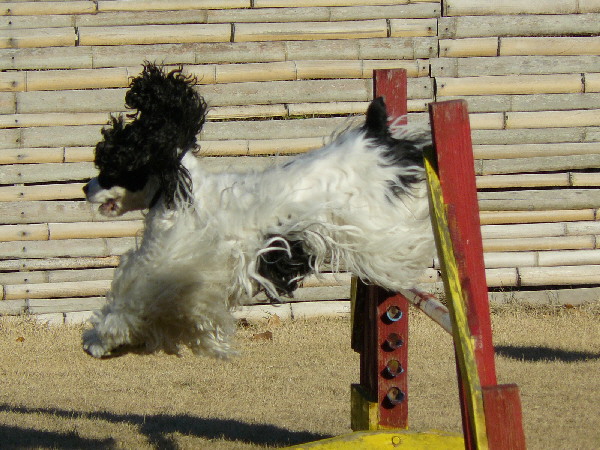 隣の小ドッグランではモーちゃんがアジの練習をしていました。