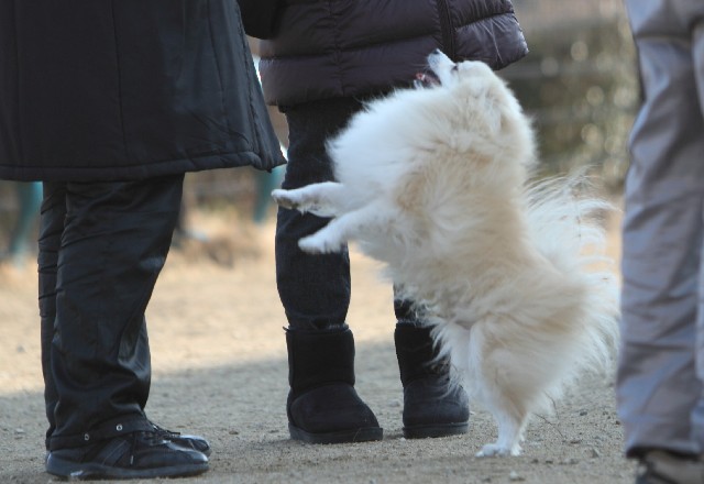 多分、大~小のワンコが一斉に挨拶に来てパニくったんでしょうね(^^;)