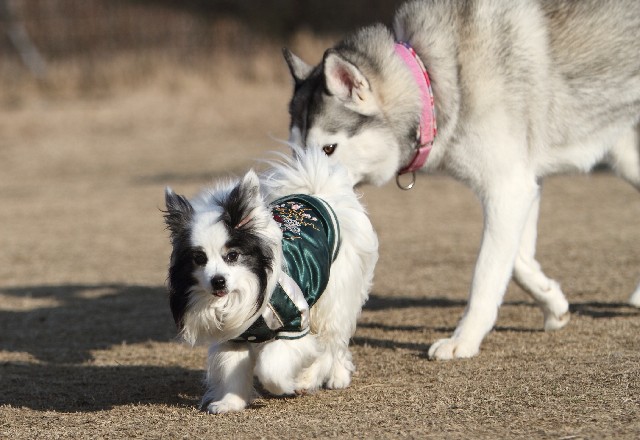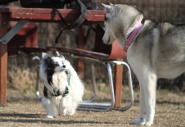 そんな時パピはハスキーちゃんとメンチの切り合い
