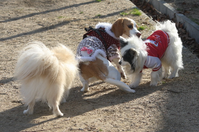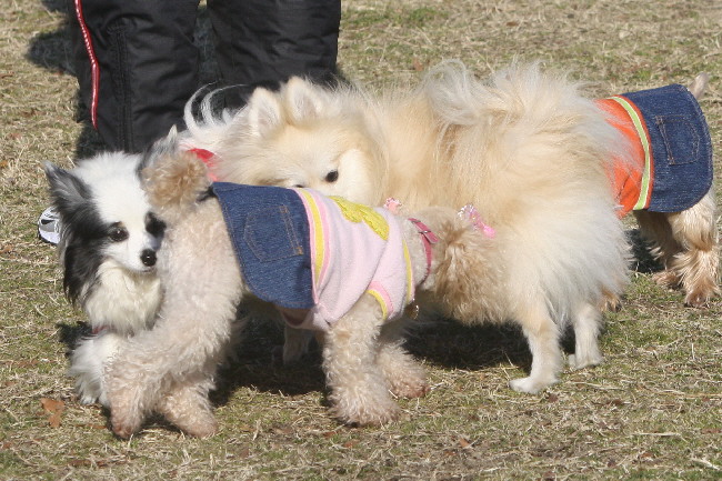 パピ君の挨拶を受けてるビーグル君は腰が引けてますね(爆)