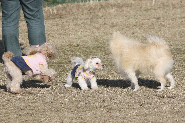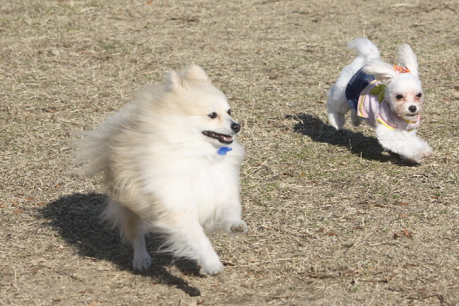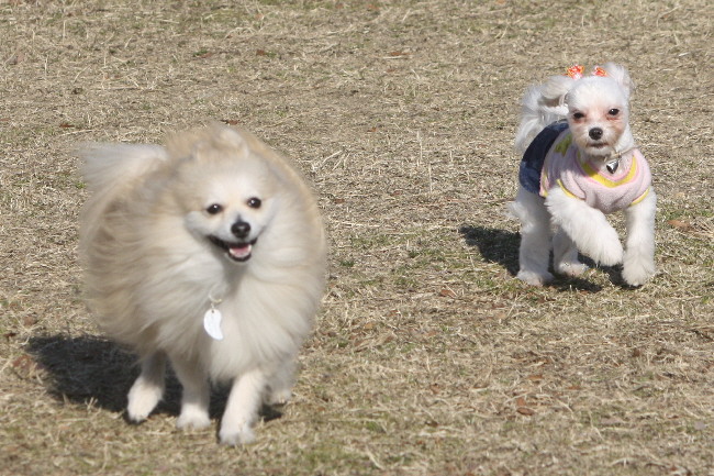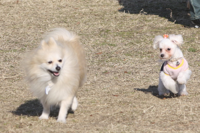 マルチーズちゃんはジョンを気に入ってくれたのか、よく付いて走っていました(^-^)