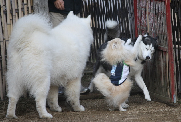 この柴パピー君はポン太くんちのご近所さんの様で、小さい頃からポン太君と遊んでいるそうなんですけど、その頃からずっとポン太君の脚が好物な様で、ポン太君はずっと噛まれているそうです(笑)