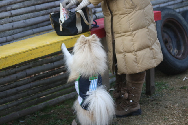 シドちゃんちのお姉さんがおやつをカバンからポケットに移す一瞬を見逃さなかったジョン。