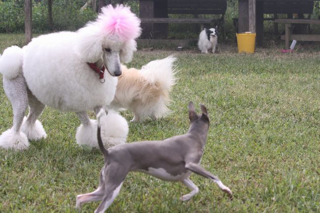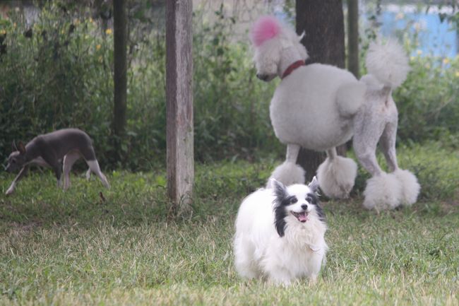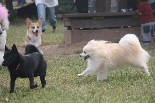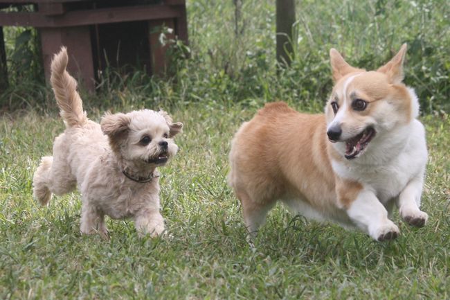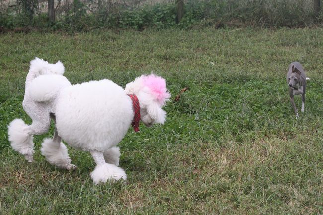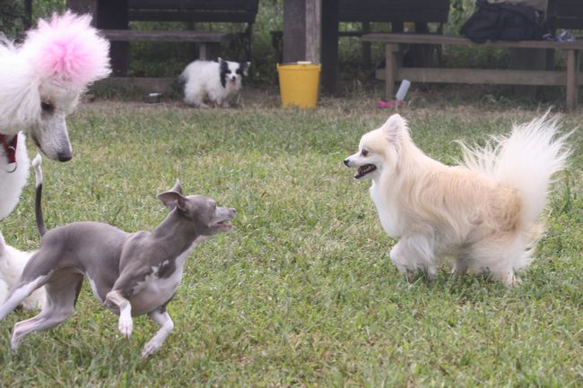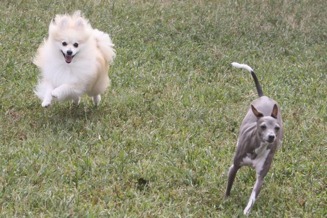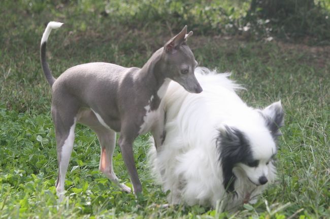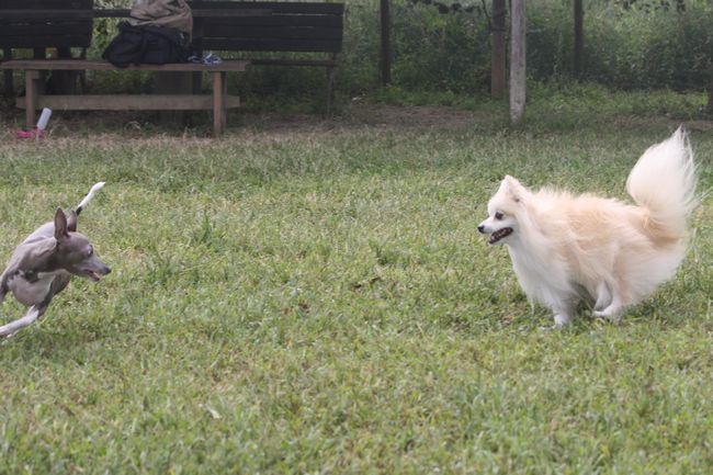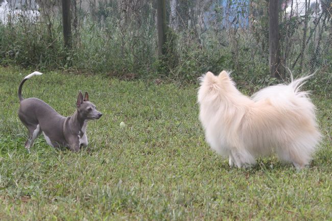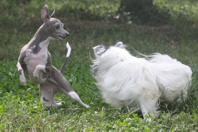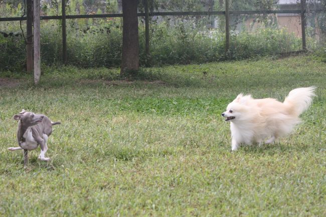 パピに追い払われたイタグレちゃん、今度はジョンと追いかけっこです。