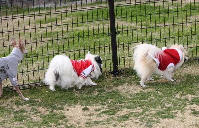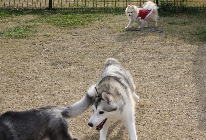 そろそろランを出ようと思いリードをつけた時に、新たに二組がランにやってきました。