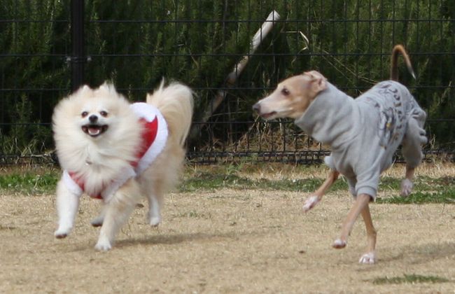 必死に走ってもこの二つの犬種にはとうてい勝てっこありません(笑)