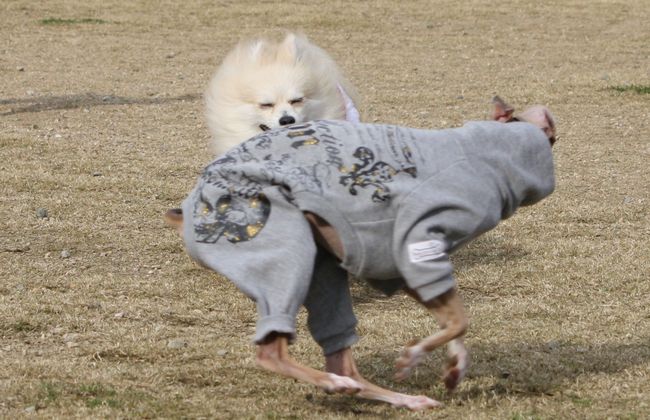 横からイタグレ君が体当たりしてきました(笑)