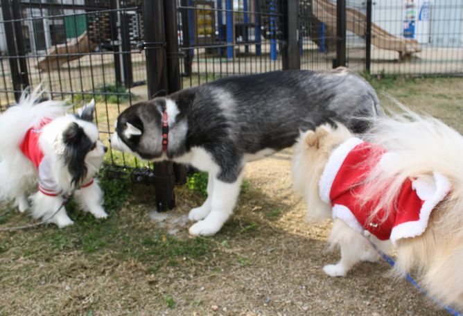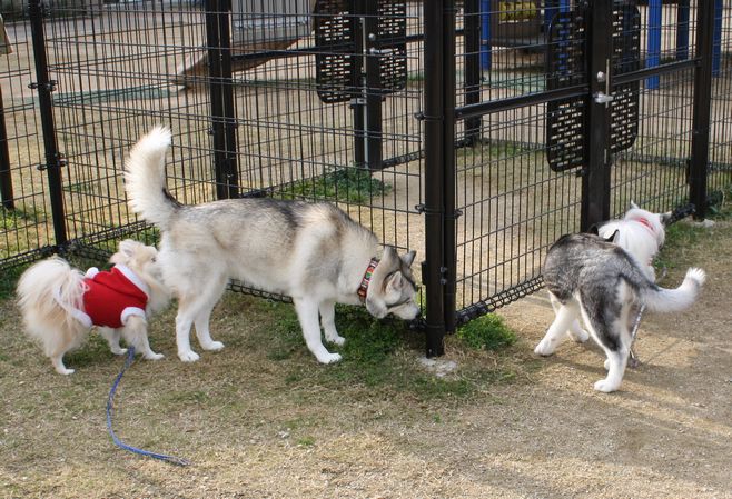 トイプーとパグを飼われている方とは以前こちらでお話させていただいた方で、ハスキー飼いの方はお話はした事ないんだけど一度見かけたことがある方でした。