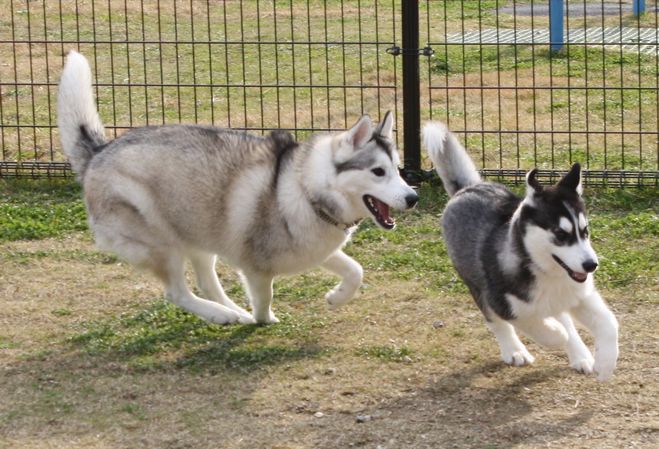 以前はシルバーのハスキー一頭だけだったけど、新たにはスキー君を迎えられていました。