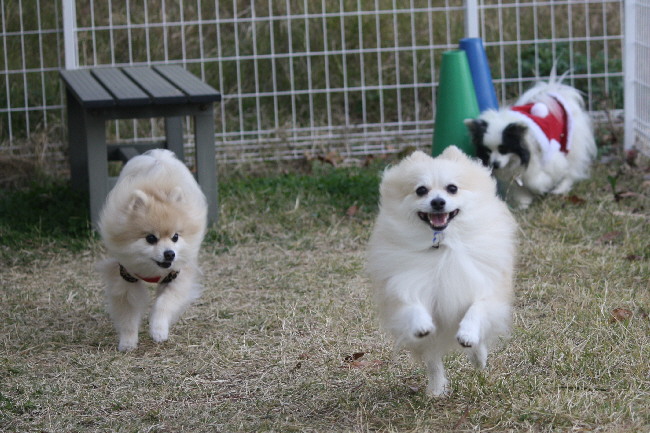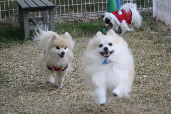 「二人ともヤンチャなので」と初めのうちはリードを放すのを躊躇されてたので、うちは全然大丈夫ですからとフリーにして貰いました。